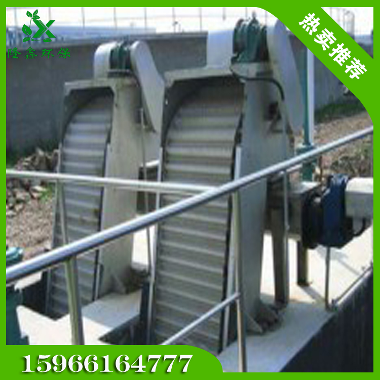 格栅一般用在大水量的造纸废水处理中,由于废水水量大,且悬浮物颗粒种类较多,设置格栅能够有效拦截较大的悬浮物,处理能力高,不易堵塞,针对造纸废水的特点我公司在工程实践中一般设置粗细格栅,粗格栅栅缝间隙常采用10-15mm,细格栅栅缝间隙通常采用1-5mm。格栅机主要有回转式机械格栅机、网式转链格栅机、固定式格栅机、反切式旋转细格栅机等,我公司常用的主要有反切式旋转细格栅机、网式转链格栅机、固定式格栅机等。