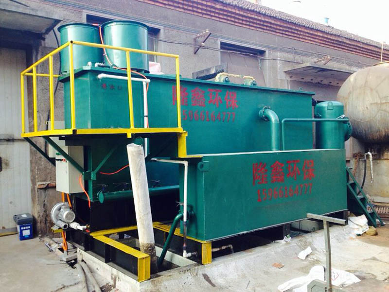 生产废水首先流入调节沉淀池,然后由泵提入絮凝反应池,同时通过自动加药机投加药剂NaOH,2‰聚铝及0.005‰的PAM助凝剂,进行絮凝反应。加药过程中,观察pH值显示仪的读数,根据声值调节NaOH的投加量,控制pH在7左右。絮凝反应时间约为15min。出水自流入气浮分离池,由溶气释放器中释放出来的溶气水将絮凝后的沉淀托出水面,在液面上形成沉淀物浮渣,浮渣经刮渣机刮出后进入干化箱,静沉后的清洁液再流入调节沉淀池,沉渣干化后可外运填埋或焚烧处理。气浮分离池下部的清液自流入清水池中,部分清水由溶气泵提入溶气罐,作为气浮用的溶气水,其余的清水由泵提入砂滤塔,经过砂滤的水再进入活性炭吸附罐进行深度处理,直接排放。