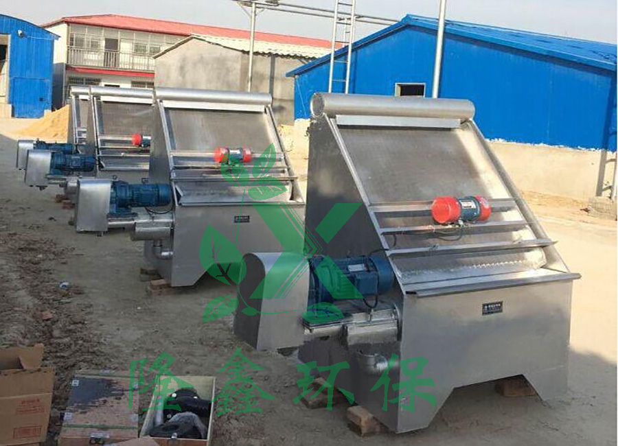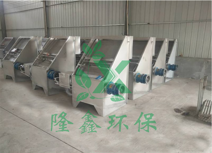 山东隆鑫环保生产的粪便固液分离机(水力筛式固液分离机)主体为由楔形钢棒经精密制成的不锈钢/碳钢平面过滤筛面,待处理废水通过溢流堰均匀分布到倾斜筛面上,由于筛网表面间隙小、平滑,背面间隙大,排水顺畅,不易阻塞;固态物质被截留,过滤后的水从筛板缝隙中流出,同时在水力作用下,固态物质被推到筛板下端排出,从而达到固液分离目的。