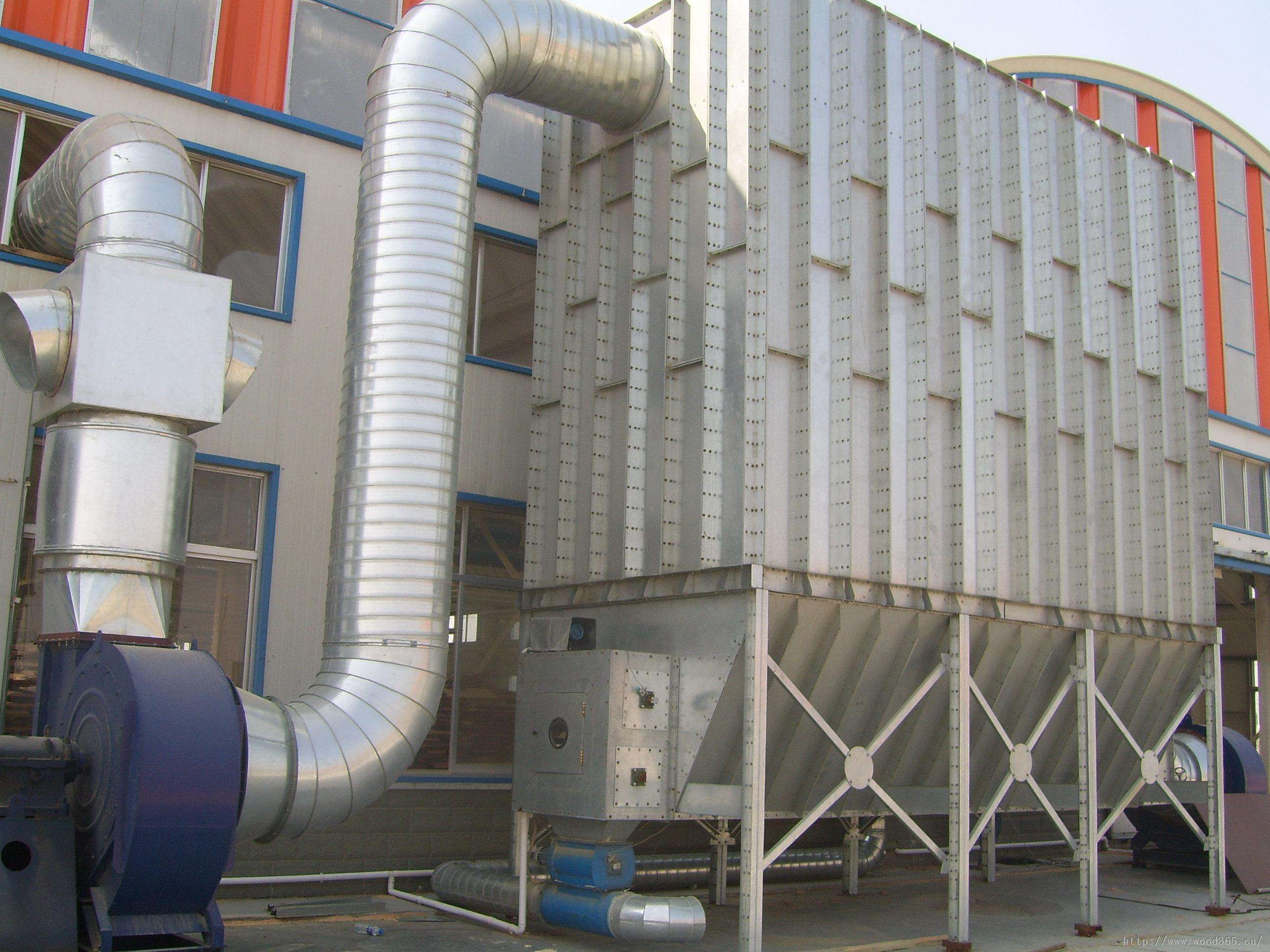 木工除尘器主要由灰斗、过滤室、净气室、支架、提升阀、喷吹清灰装置等部分组成。木工除尘器是由旋风筒体,集灰斗和蜗壳(或集风帽)三部分组成,按筒体个数区分,有单筒,双筒,三筒,六筒等五种组合,每种组合有两种出风形式:Ⅰ型水平 出风和Ⅱ型(上部出风),对于Ⅰ型双筒组合者,另有正中进出风和旁侧进出风两种组合形式,Ⅰ型单筒和三筒只有旁侧时出风一种形式,四筒和六筒组合则只有正 中进出风形式,对于二型各种组合,可采用上述Ⅰ型中的任意一种进风位置,该种除尘设备具有阻力小,除尘效率高,处理风量大,性能稳定,占地面积小结构简单,实用廉价等特点,适用于各种机械加工,冶金建材,矿山采掘的粉尘粗、中级净化。