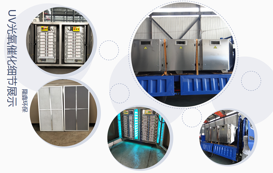 三、利用特制的催化剂进行氧化还原反应,运用高能UV紫外线光束、臭氧及催化剂对恶臭气体进行协同分解氧化反应,使恶臭气体物质降解转化成低分子无害或低害的化合物、水和二氧化碳,彻底达到除臭及杀灭有害细菌的目的。