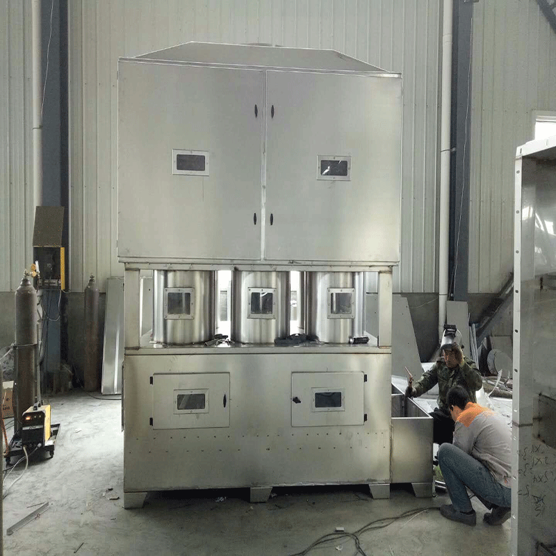 活性炭吸附设备,是一种高效率经济实用型有机废气的净化与治理装置;是一种过滤吸附有机废气的环保设备产品。活性炭吸附设备具有吸附效率高、适用面广、维护方便,能同时处理多种混合废气等优点。该设备适合净化处理小风量高浓度和大风量低浓度的有机废气的吸附设备;其原理是利用活性炭本身高强度的吸附能力,将有机废气分子吸附在活性炭内部微孔内;其对苯、醇、酮、酯、汽油类等有机溶剂的废气有很好的吸附作用;因此其在喷涂、食品加工、印刷电路板、半导体制造、化工、电子、制皮业、乳胶制品业、造纸等行业均可选用。